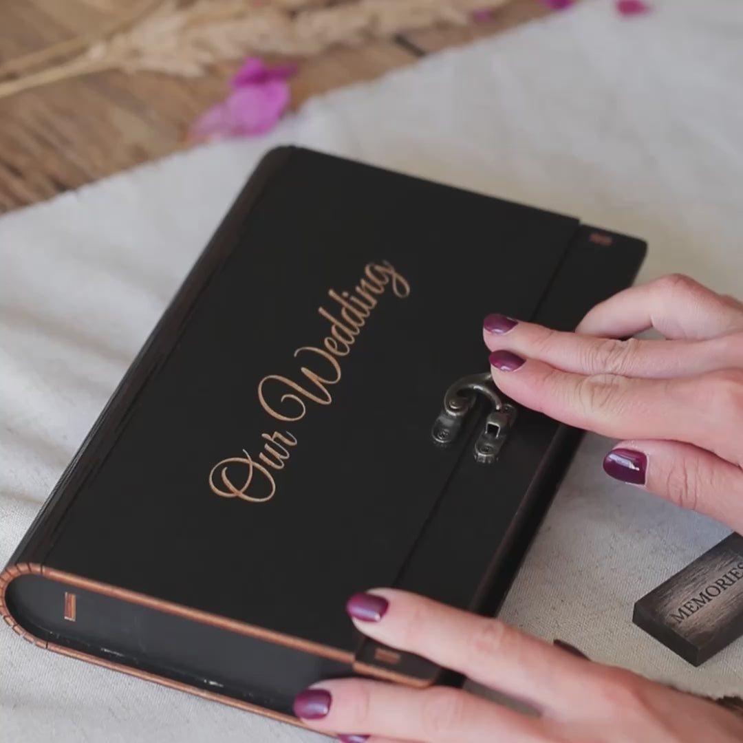 Eine tolle Alternative zum klassischen Fotoalbum zur Aufbewahrung von Fotos. Eine personalisierte Holzkiste in Schwarz mit einem Fach für ein Flash-Laufwerk ist eine tolle Idee als Geburtstagsgeschenk oder um Ihre Fotoarbeiten Ihren Hochzeitskunden zu präsentieren. Bestellen Sie eine Gravur Ihres Logos oder Namens auf dem Deckel und erhalten Sie ein tolles Geschenk.