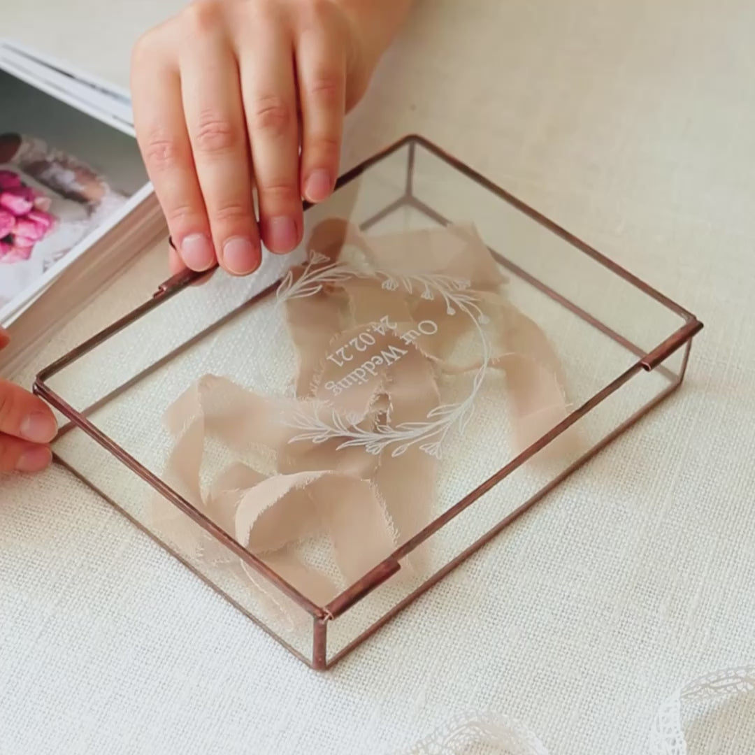 Luxuriöse Rose-Gold Glas-Foto-Box – Handgefertigtes Hochzeitsfotografie-Geschenk