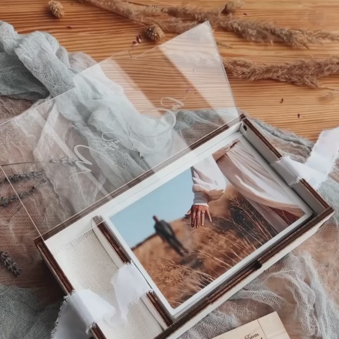 Weiße personalisierte Fotobox aus Holz für Abzüge im Format 4x6 oder 5x7, Hochzeitsboxfotos, hölzerne Erinnerungsbox, gravierte Box für Fotoverpackungen von Fotografen