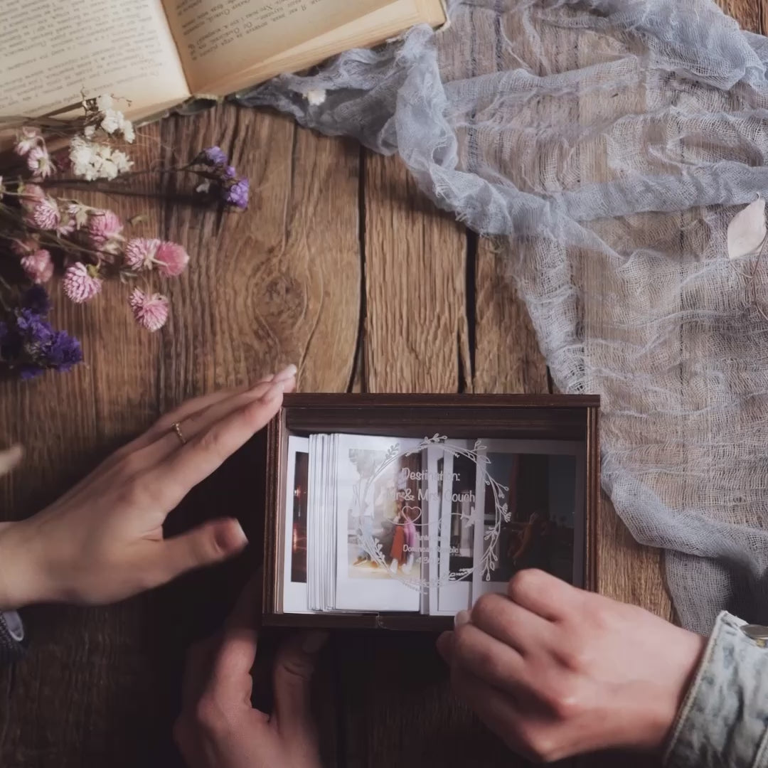 Cattura i ricordi con scatole di legno personalizzate con coperchi in acrilico: un modo unico per custodire le tue foto istantanee. Realizzate con cura, queste scatole versatili non solo mettono in mostra le tue stampe Instax in modo elegante, ma fungono anche da eleganti cornici per foto, perfette per esporre i tuoi cari ricordi su uno scaffale o in qualsiasi altro posto speciale. Disponibili in una gamma di colori tra cui bianco, nero, noce e rovere dorato, queste scatole sono regali straordinari per i tuoi cari.